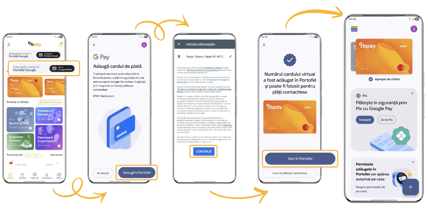 Dacă dețineți deja un card Bpay, adăugați-l în Portofel Google și începeți să plătiți digital, mai rapid ca oricând.